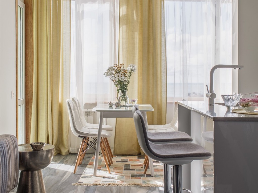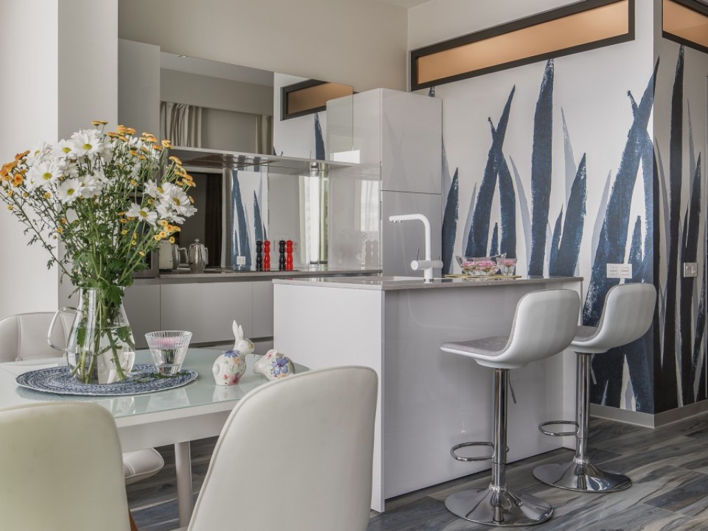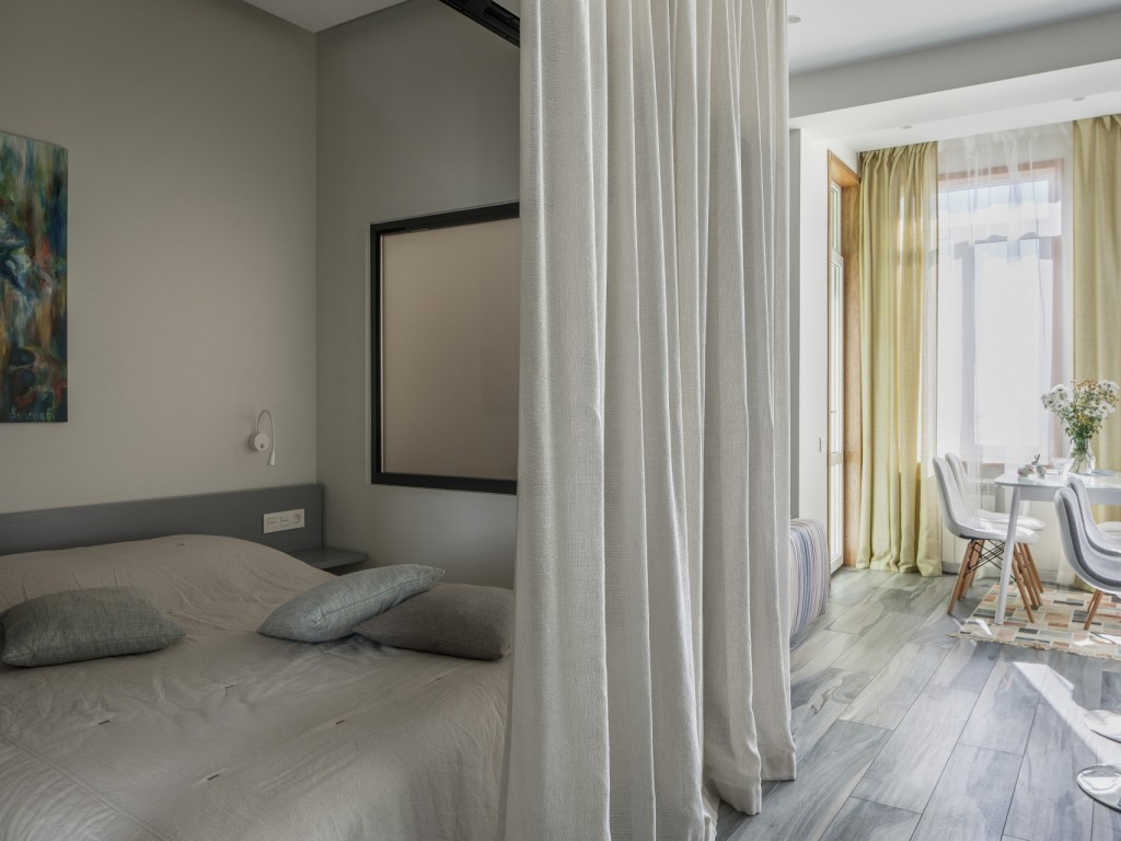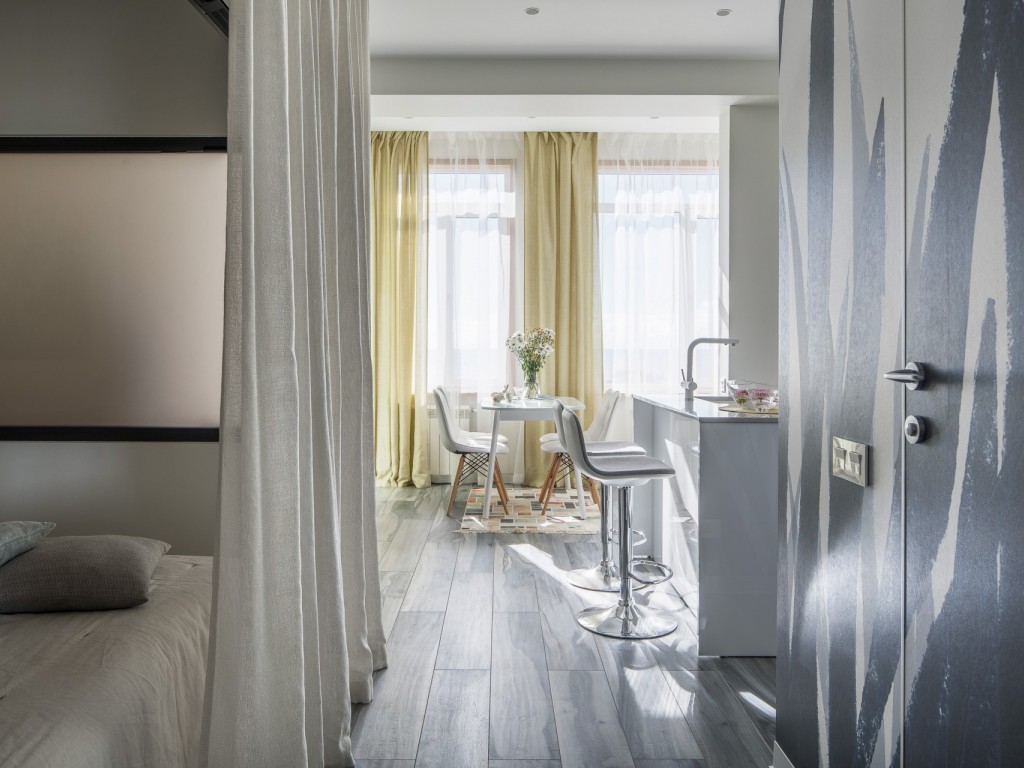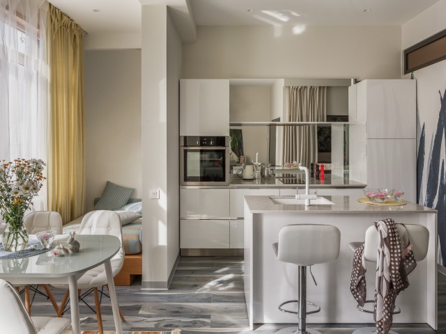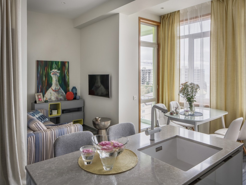 Реализованный проект небольшой квартиры общей площади 42м2 с прекрасным видом на море.