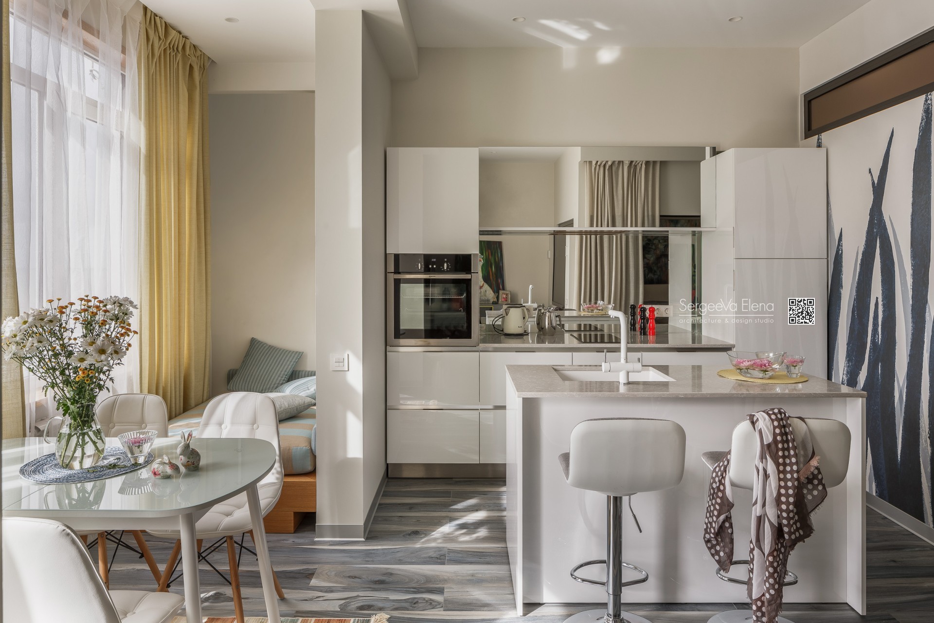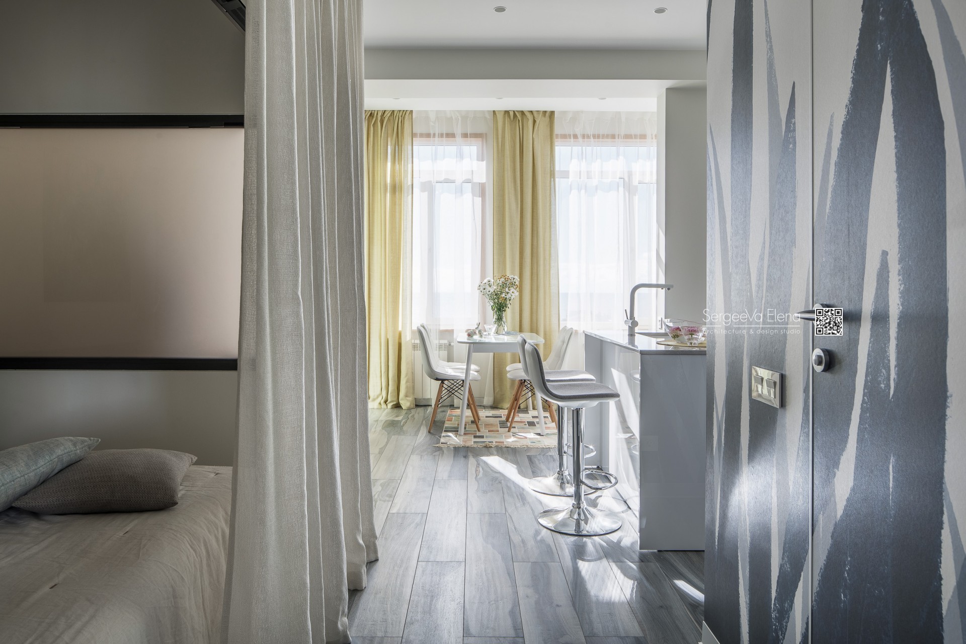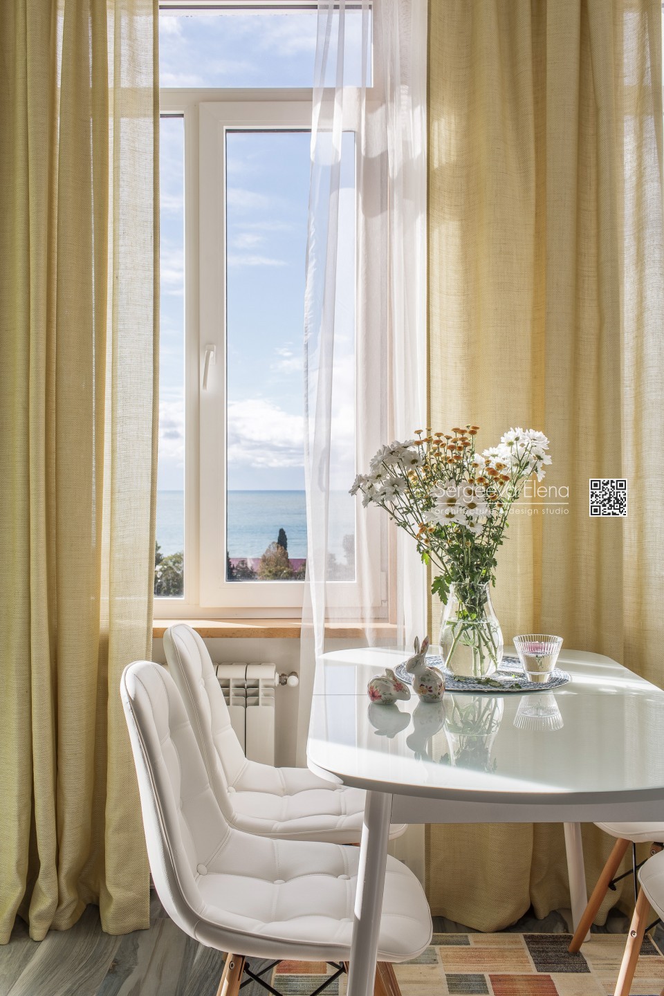 Реализованный проект небольшой квартиры общей площади 42м2 с прекрасным видом на море.