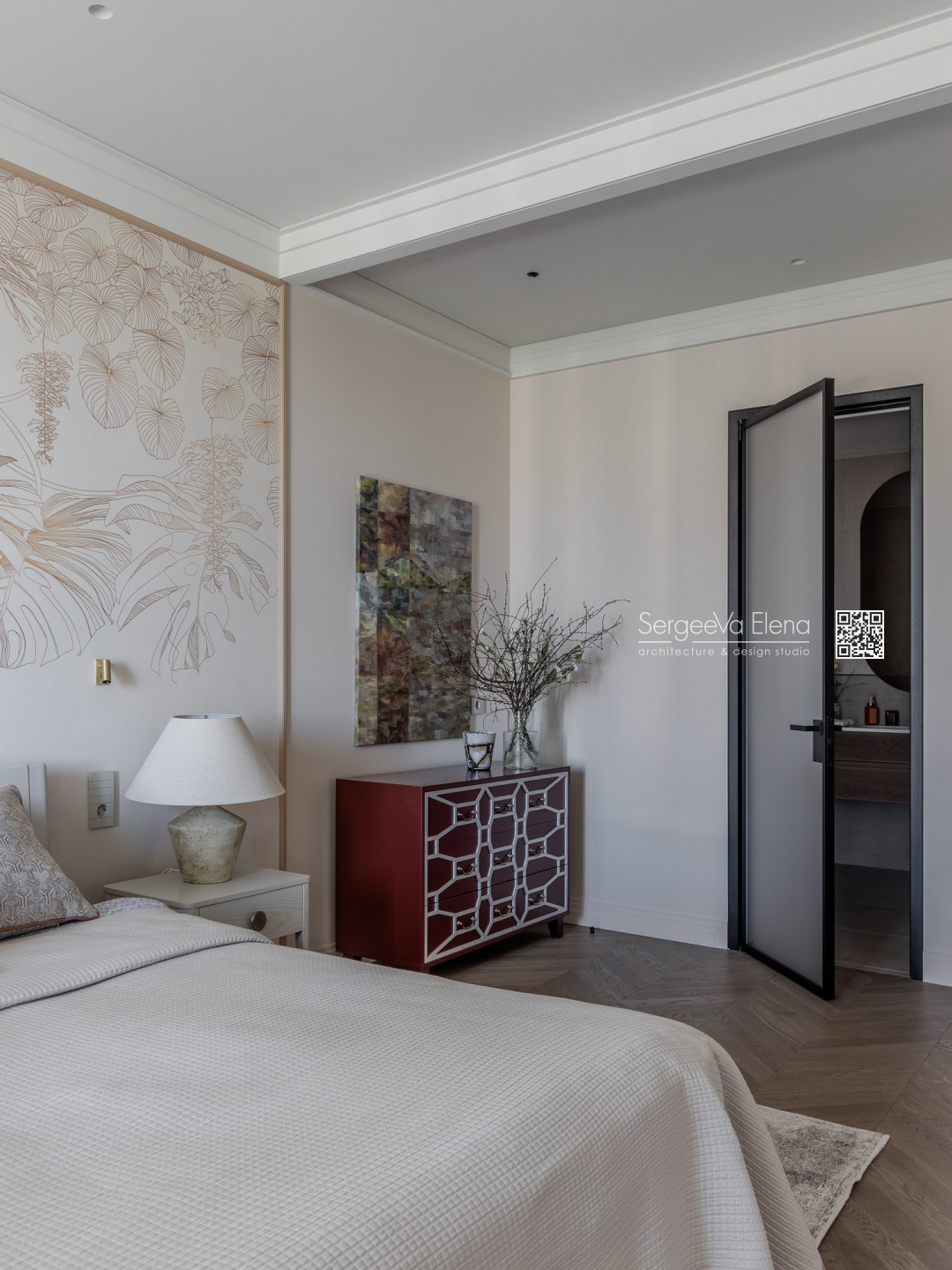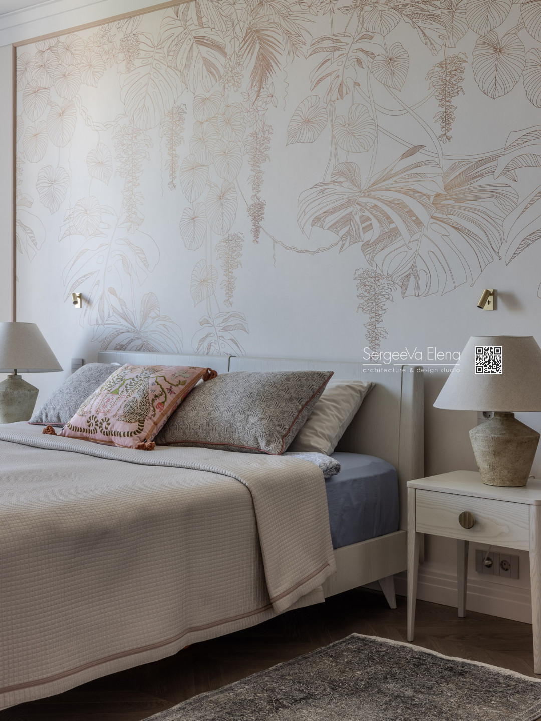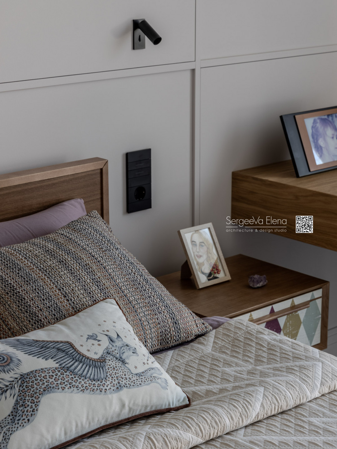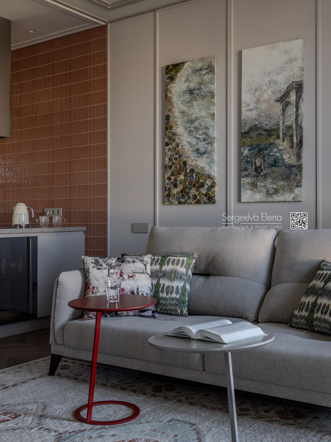 Реализованный проект квартиры общей площади 100м2. Автор картин в кухонно - гостиной комнате и в хозяйской спальне Елена Сергеева