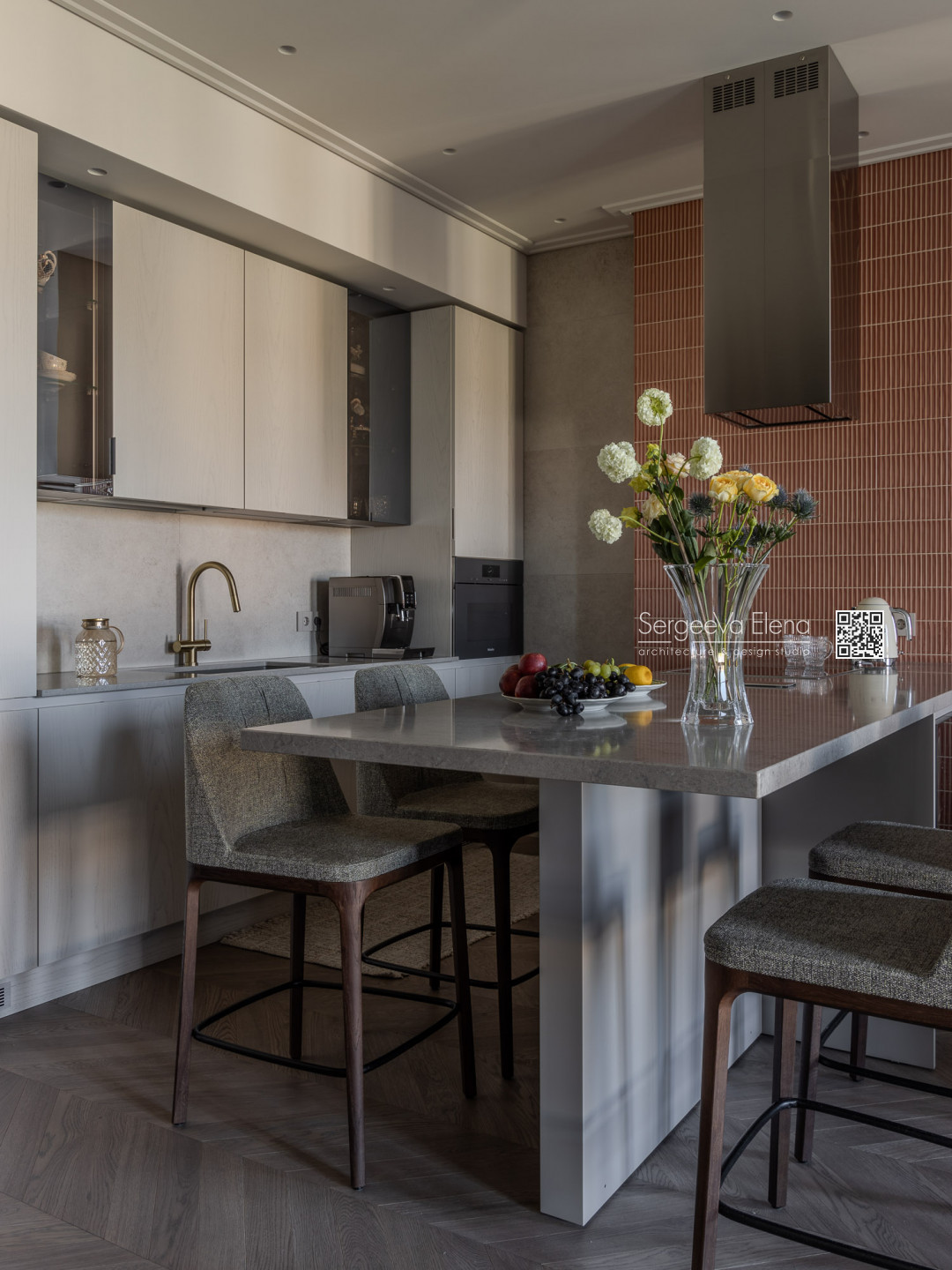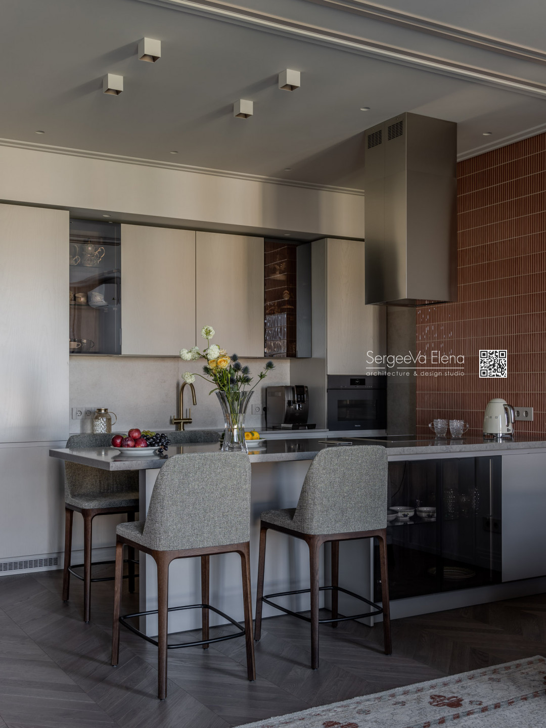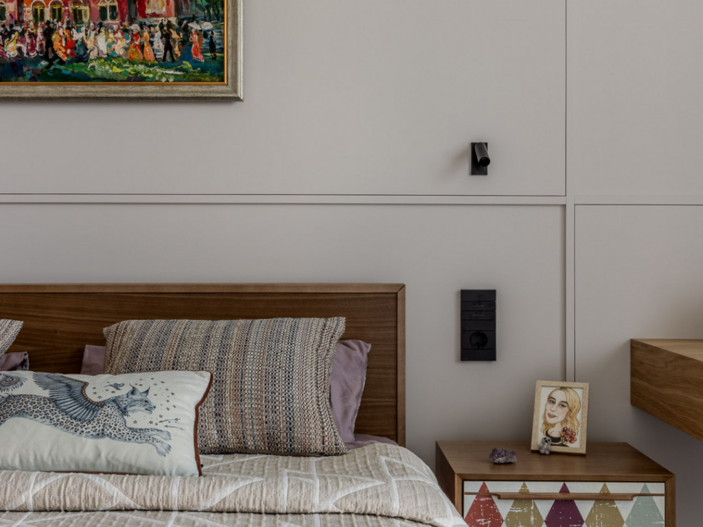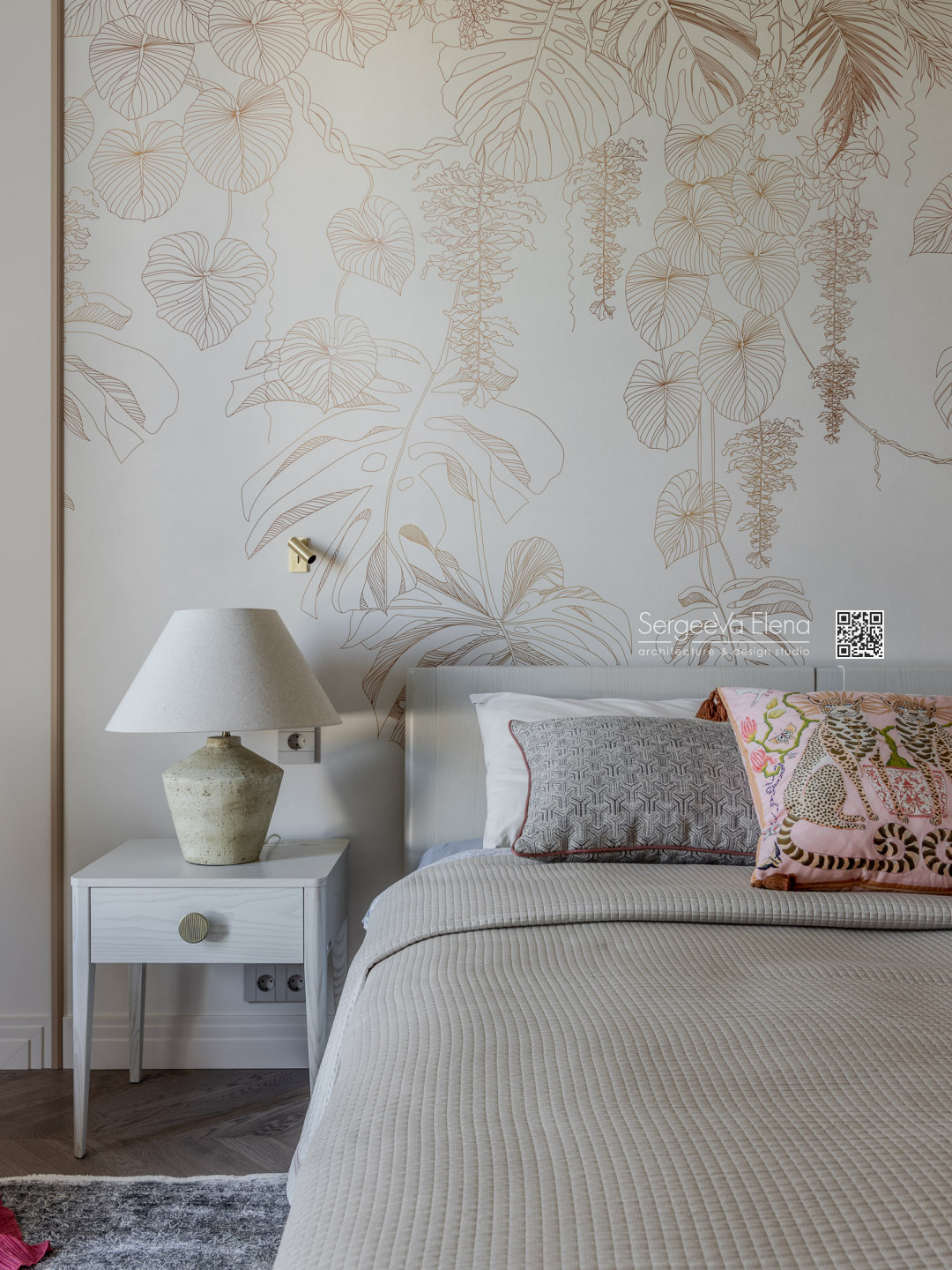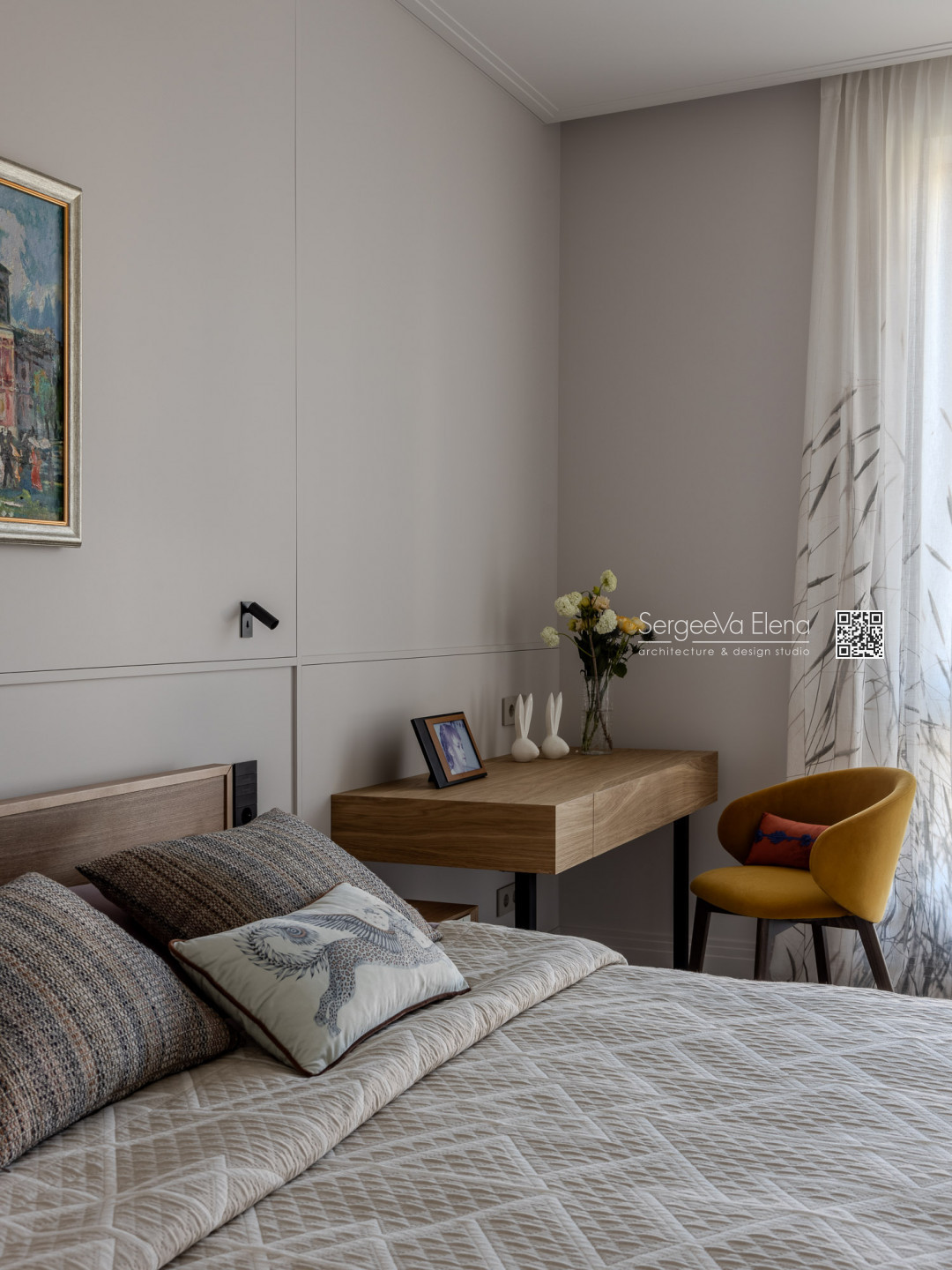 Реализованный проект квартиры общей площади 100м2. Автор картин в кухонно - гостиной комнате и в хозяйской спальне Елена Сергеева