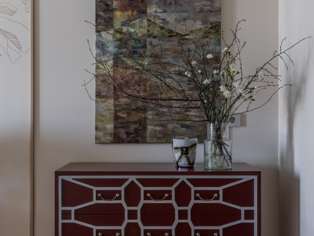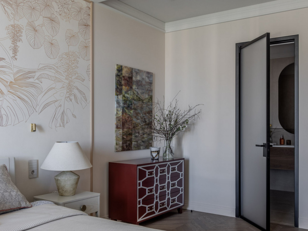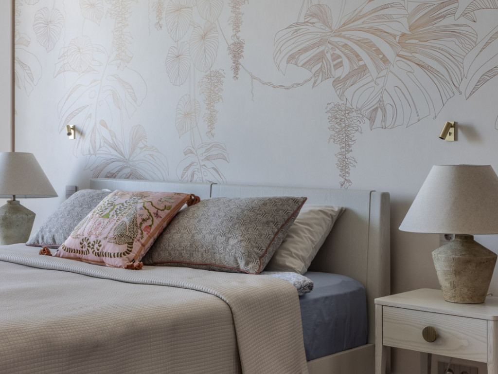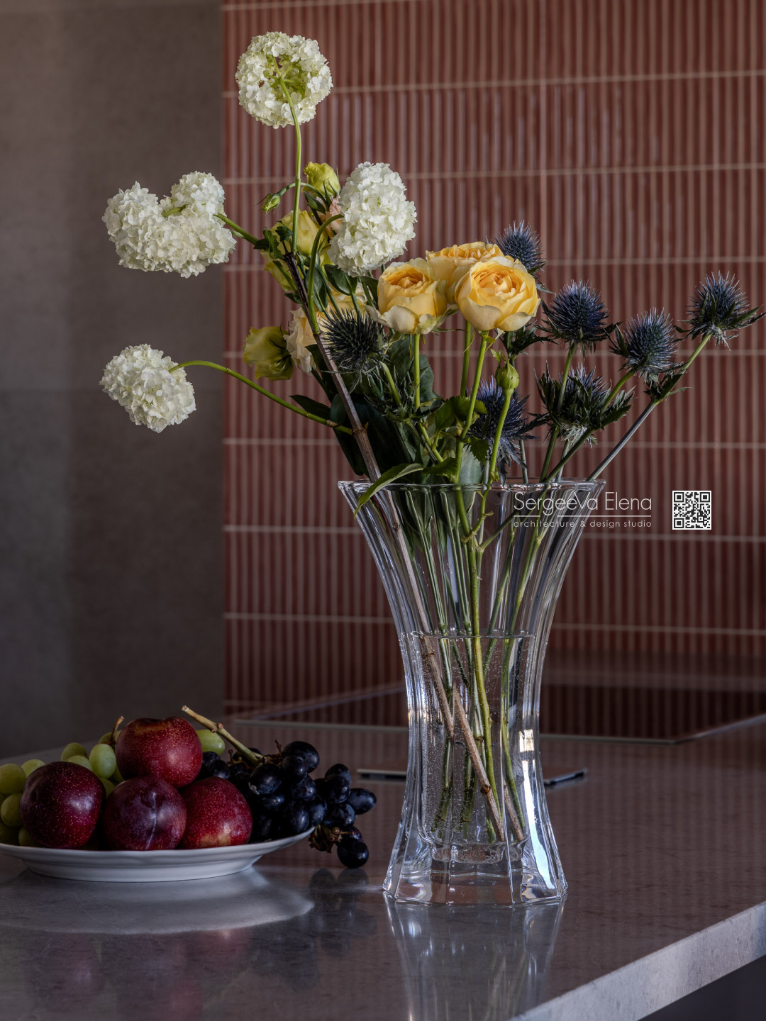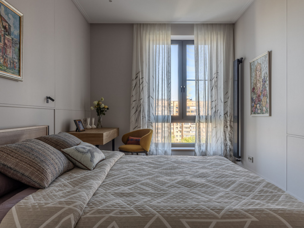Реализованный проект квартиры общей площади 100м2. Автор картин в кухонно - гостиной комнате и в хозяйской спальне Елена Сергеева